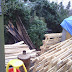 In the image the black lines indicate the new strips of oak that fix the 2 parts together, the bits with red marks we just wedges.