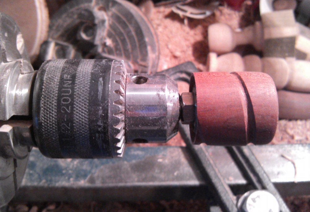 I turned the handles quickly (perhaps a little too quickly) on my lathe, from an old bit of fence post, they fit into the arm with a screw and a load of strong glue.